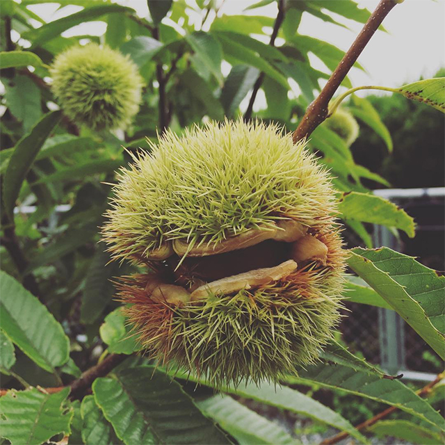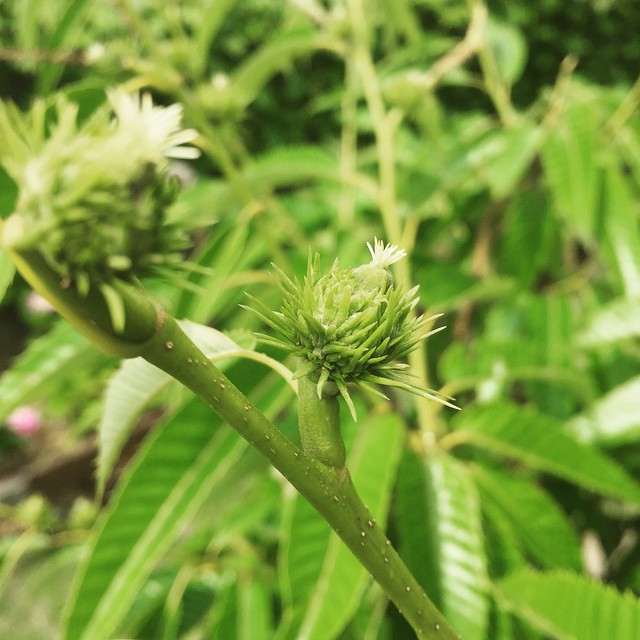 桃栗三年柿八年。確かに三年目で栗の実が出来てきた。 #ngtmnnw