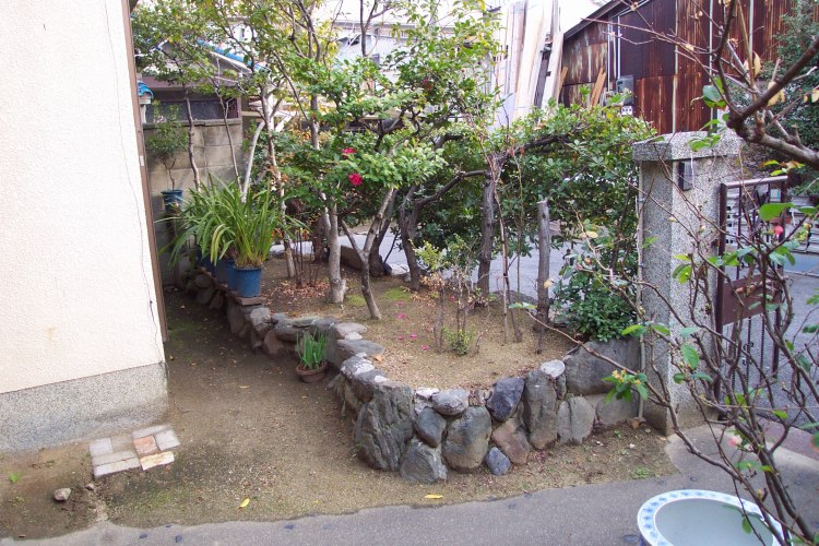 アプローチをはさんで左側の庭はこんな感じ