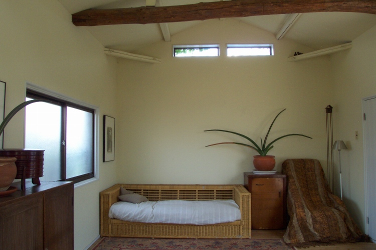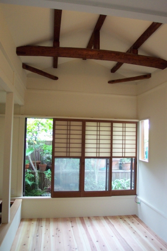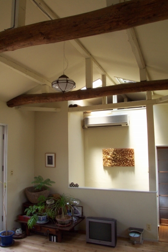 天井を取って梁を見せています。