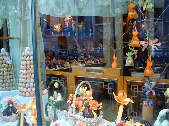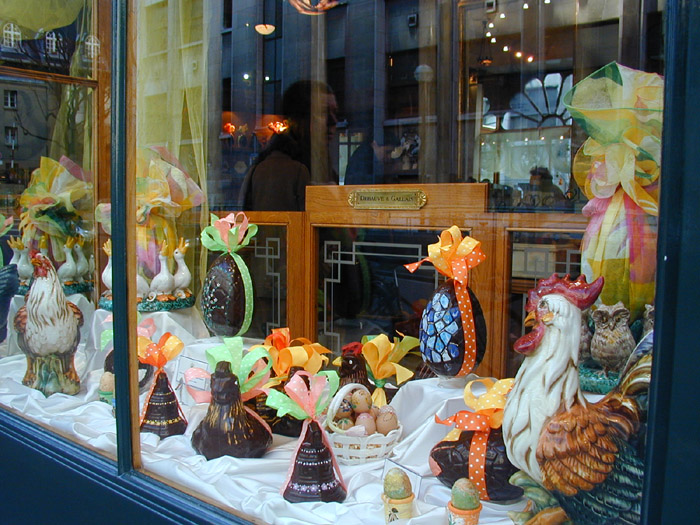 あちこちのチョコレート屋さんではイースター(フランス語ではパック)のディスプレイがされています。