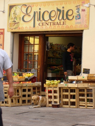 食事してた前の店。食べながら観察してるとこの犬が良く働いていました。